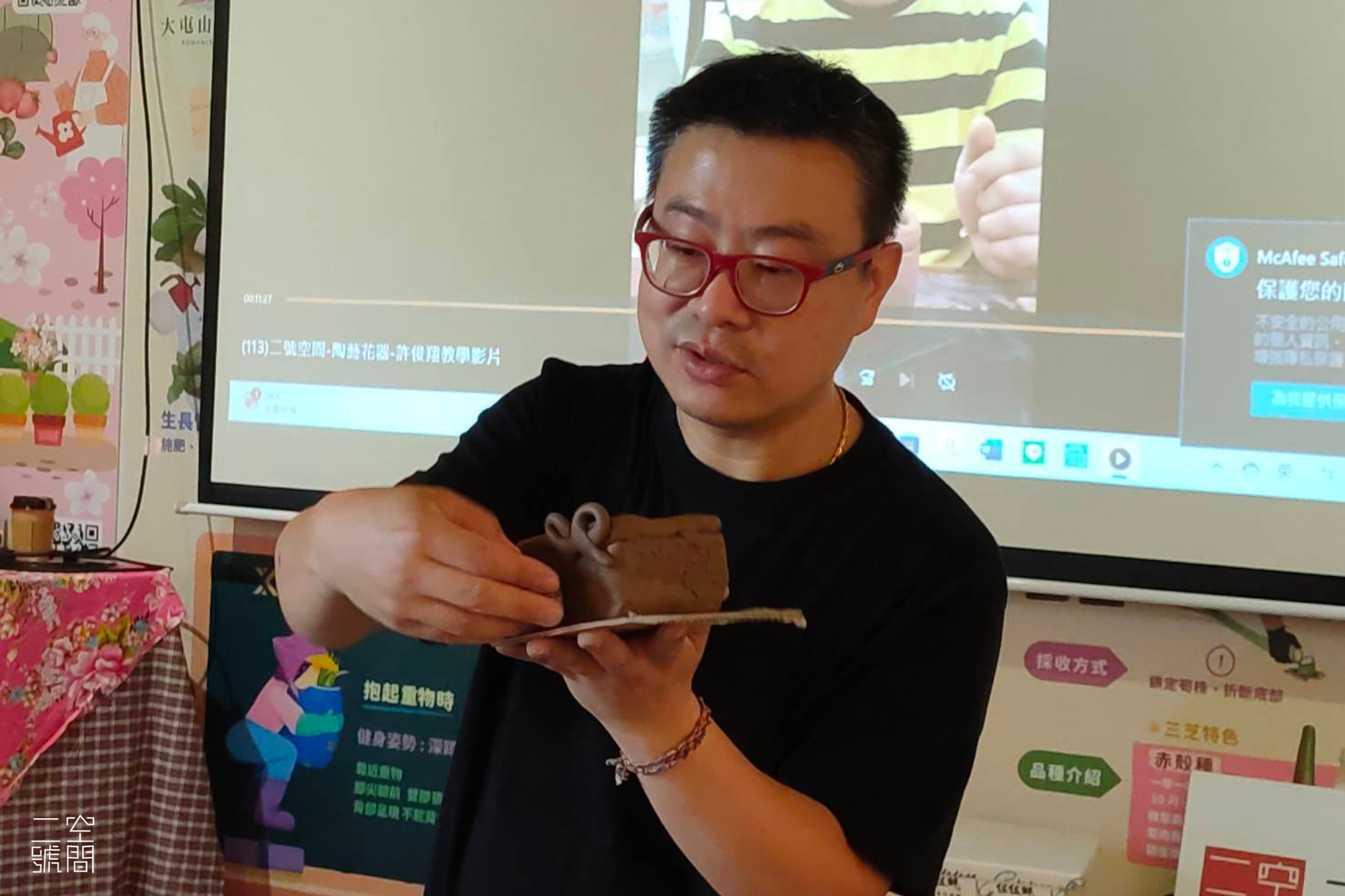 柴燒陶藝家許俊翔老師帶領學員創作「陶藝花器」,融合藝術與農業的設計讓學員動手體驗,期待作品燒製完成後搭配植物展示,展現地方創生的魅力。