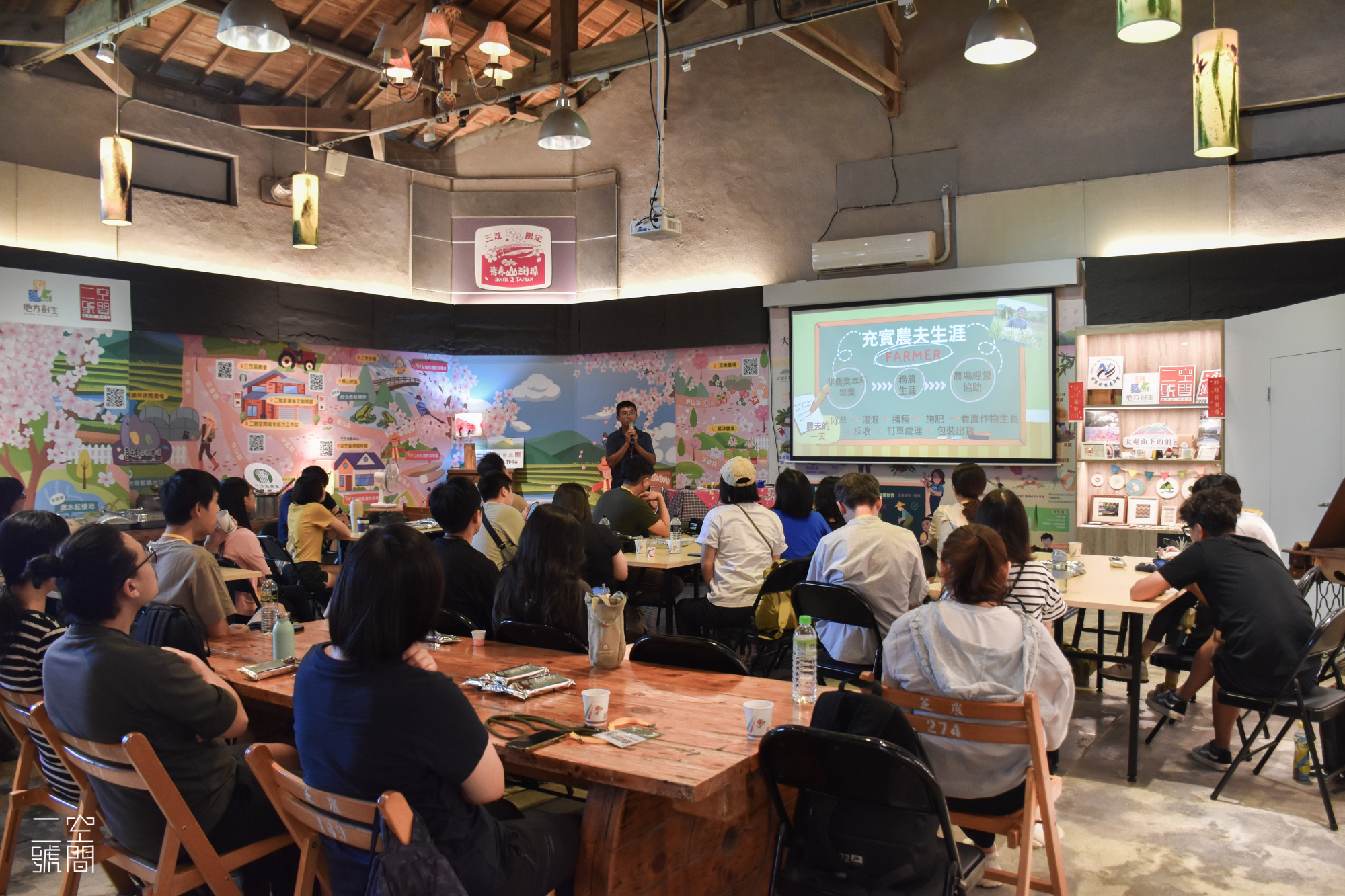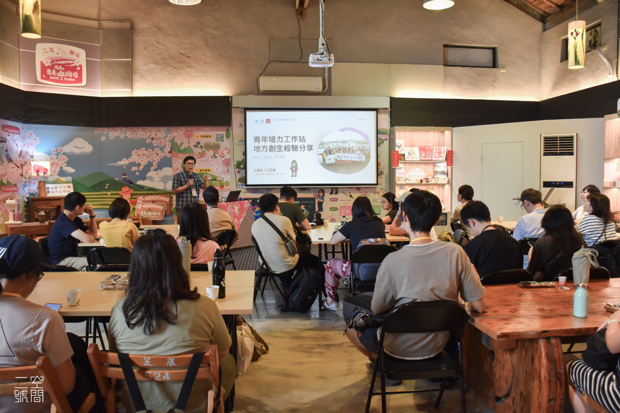 - 經驗分享:二號空間青培站執行長江玉誠分享三芝地方創生的推動歷程,包括三芝故事館從閒置穀倉轉型為多功能展示場域的成功案例。