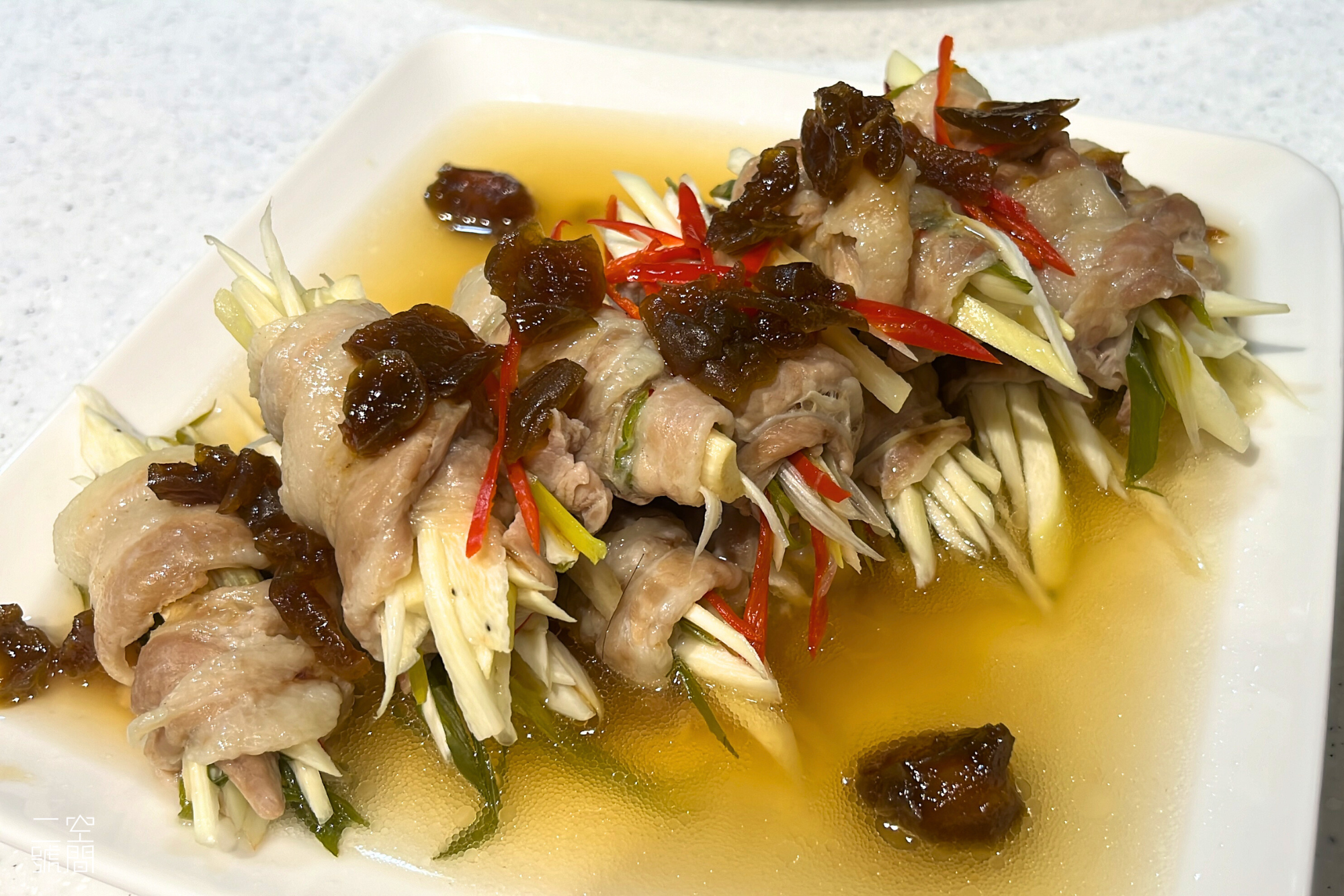 - 如意筍絲捲:五花肉片包裹茭白筍絲與蔥絲,清蒸後淋上紫蘇梅醬,香氣濃郁,口感層次豐富。