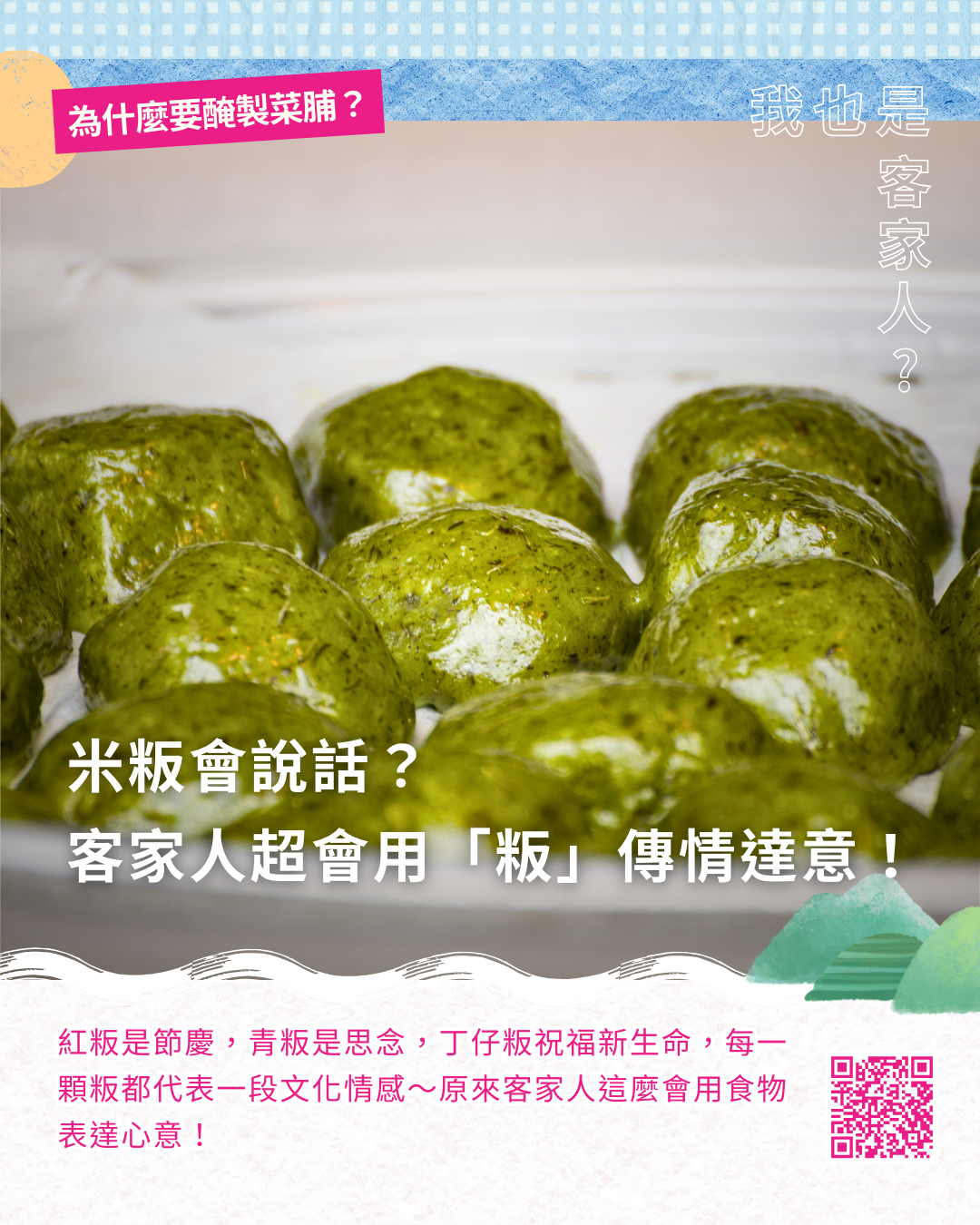 對客家人來說,飯桌上的每一道菜,不只是吃飽而已,還藏著超多生活智慧!從農田收成的稻米、蘿蔔、甘藷,到節慶祈福與祭祖必備的米粄,客家飲食是一種敬天惜物的智慧,這些味道,就是客家文化最生活、也最有溫度的存在!這期電子報,帶你從菜市場、廚房、阿嬤的冰箱一路逛到山海北客的心頭好~吃出風味,也吃出文化!