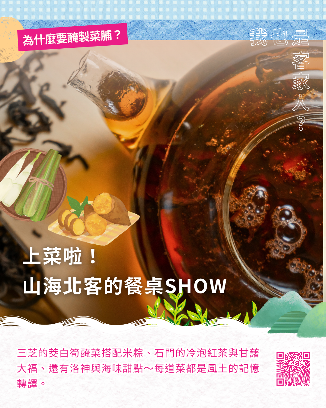 歡迎大家來,看見三芝與石門的山海風土,也聽見那些藏在廚房與餐桌上的客底故事。