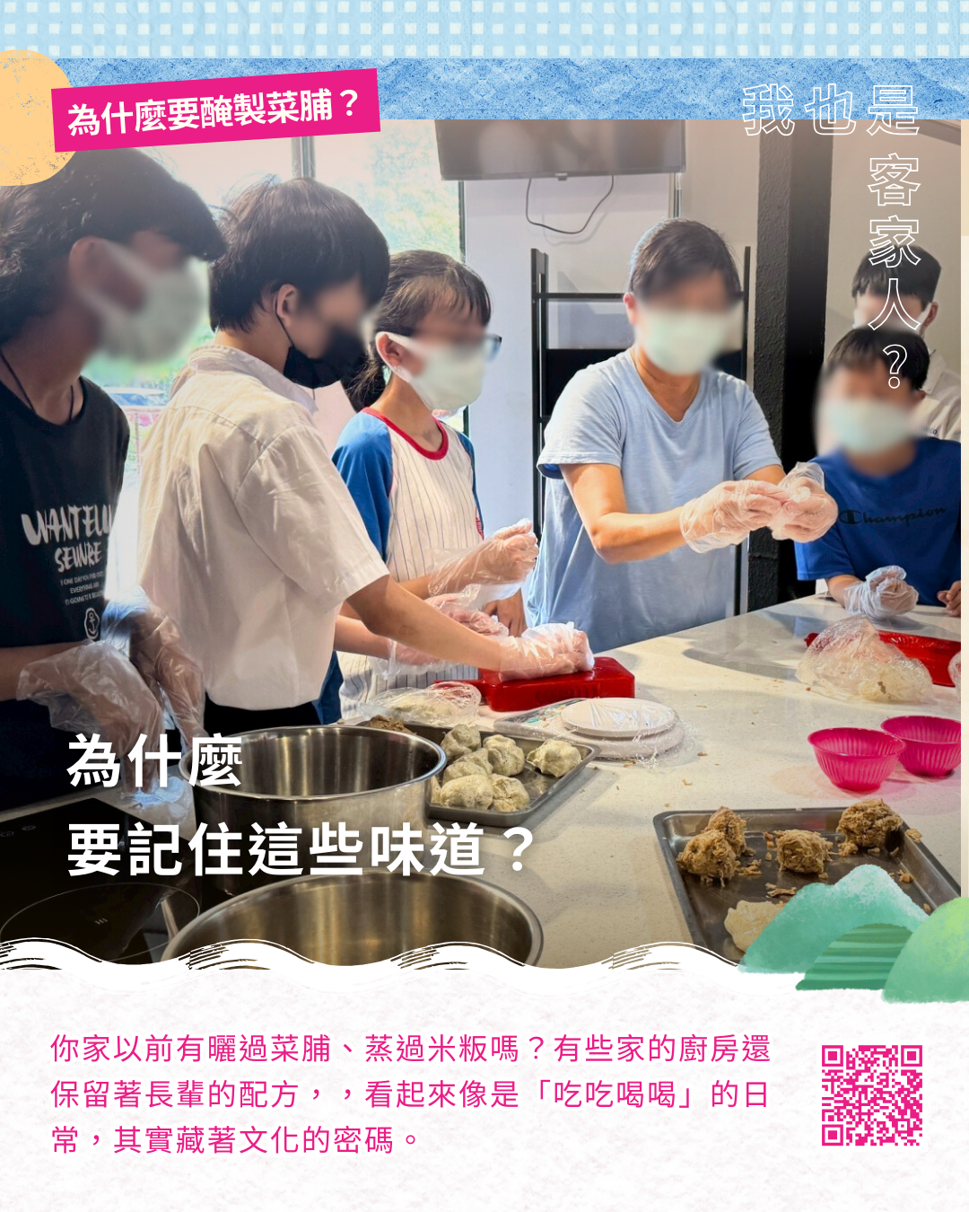 我們在田調中發現,有些家的廚房還保留著長輩的配方,有些人則從阿公阿嬤口中學會醃菜、泡茶、蒸粄的做法,看起來像是「吃吃喝喝」的日常,其實藏著文化的密碼,雖然這期電子報以「為什麼要醃製菜脯?」開場,但我們真正想問的,是「為什麼要記住這些味道?」