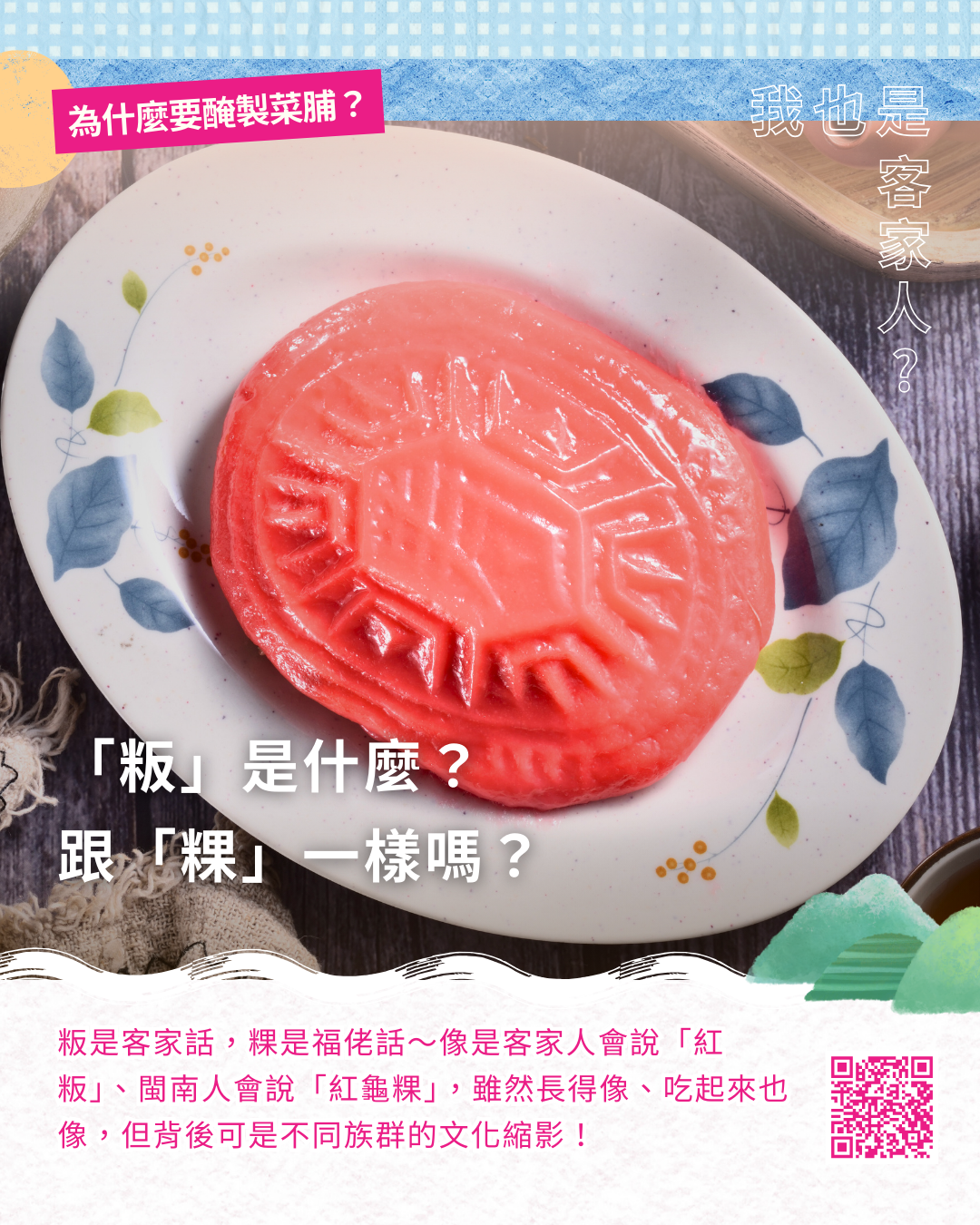 像是客家人會說「粄條」、閩南人會說「粿仔條」;客語的「水粄」,閩南話會叫它「碗粿」,雖然長得差不多、吃法也像,但背後藏的是族群獨特的文化記憶,所以下次看到「粄」這個字,別再覺得陌生~它可是客家文化的代表之一喔!