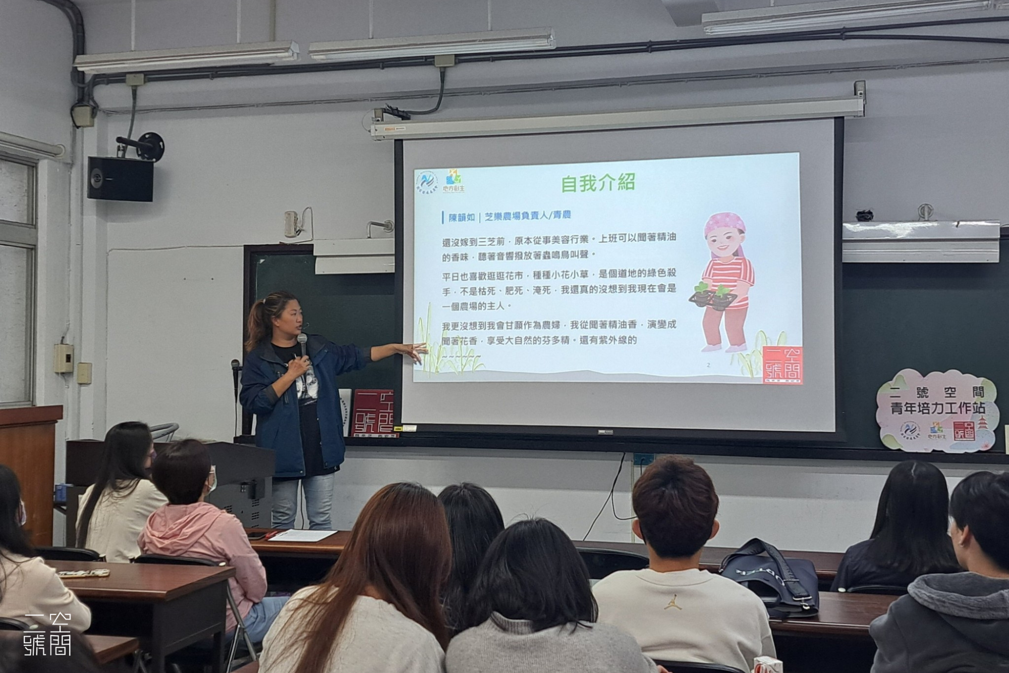 芝樂農場由負責人陳韻如(小美)經營,原為美容業者的她,婚後移居三芝,從零開始創建草莓苗園,並透過食農教育課程及手工藝品製作等多元方式,發展農場的潛力。本次活動旨在帶領青年學員了解草莓苗的種植流程,並分享創業經驗,啟發參與者對人生規劃的思考。