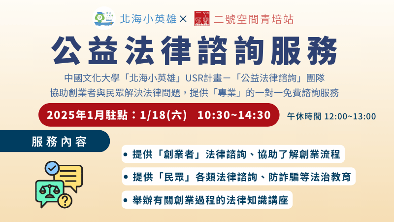 【2025 公益法律諮詢服務-1/18 三芝駐點】